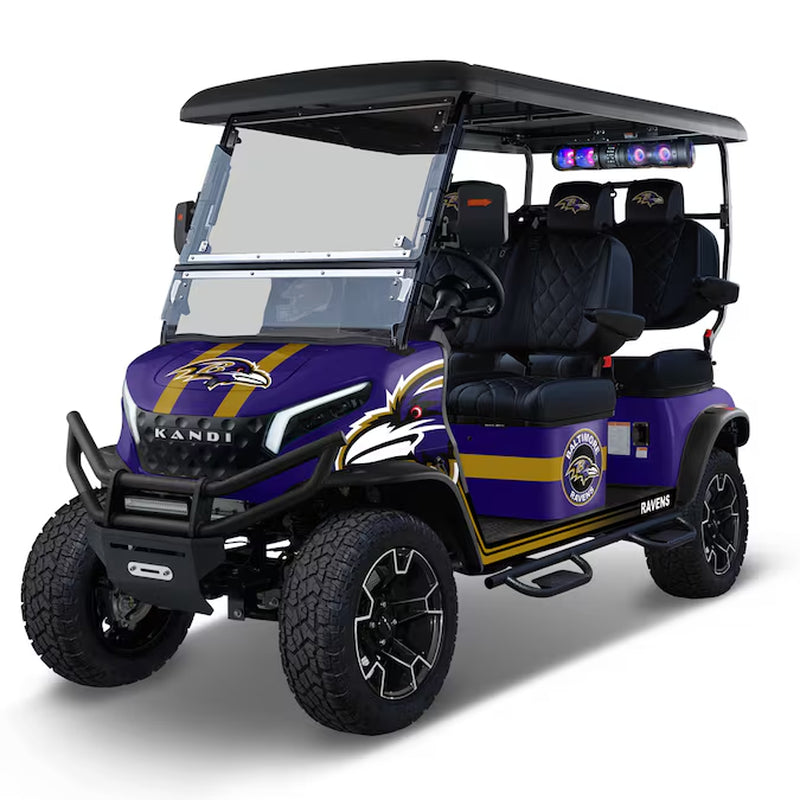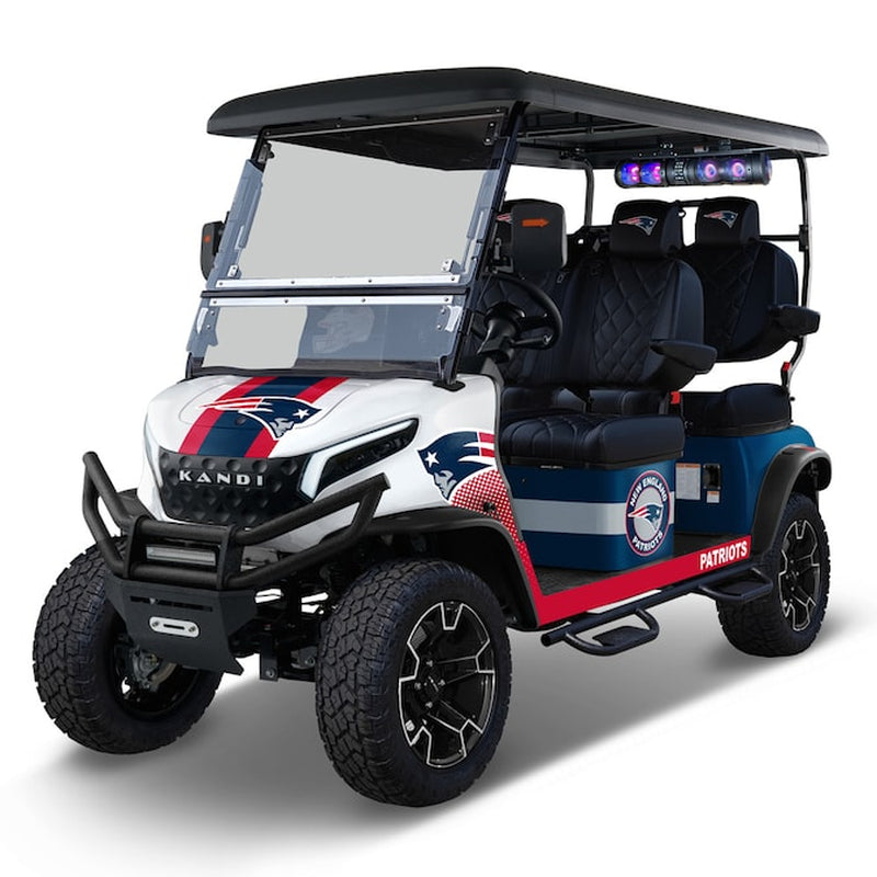 Introducing the Lowe’s Exclusive NFL licensed golf cart program! Launching in Fall of 2024, pre-order your Limited Edition NFL licensed electric golf cart today to insure you can show support for your favorite NFL team as you travel around your property, neighborhood, campground or golf course. These beautifully designed electric golf carts loaded with deluxe features are sure to be a fan favorite!
